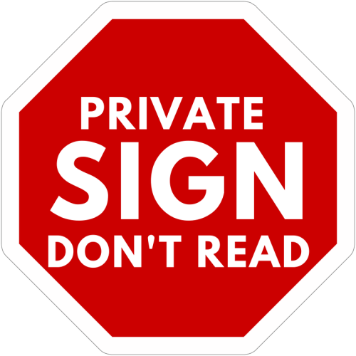 "Private Sign. Don't Read!" - Nie czytać! Nie patrzeć! Własność prywatna!