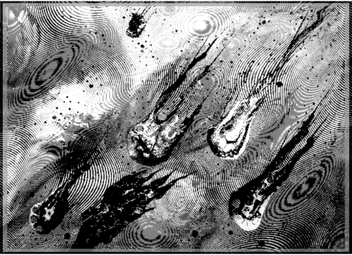 "Deszcz meteorów" - czarnobiała grafika na podstawie akrylowego obrazu HelenGie.